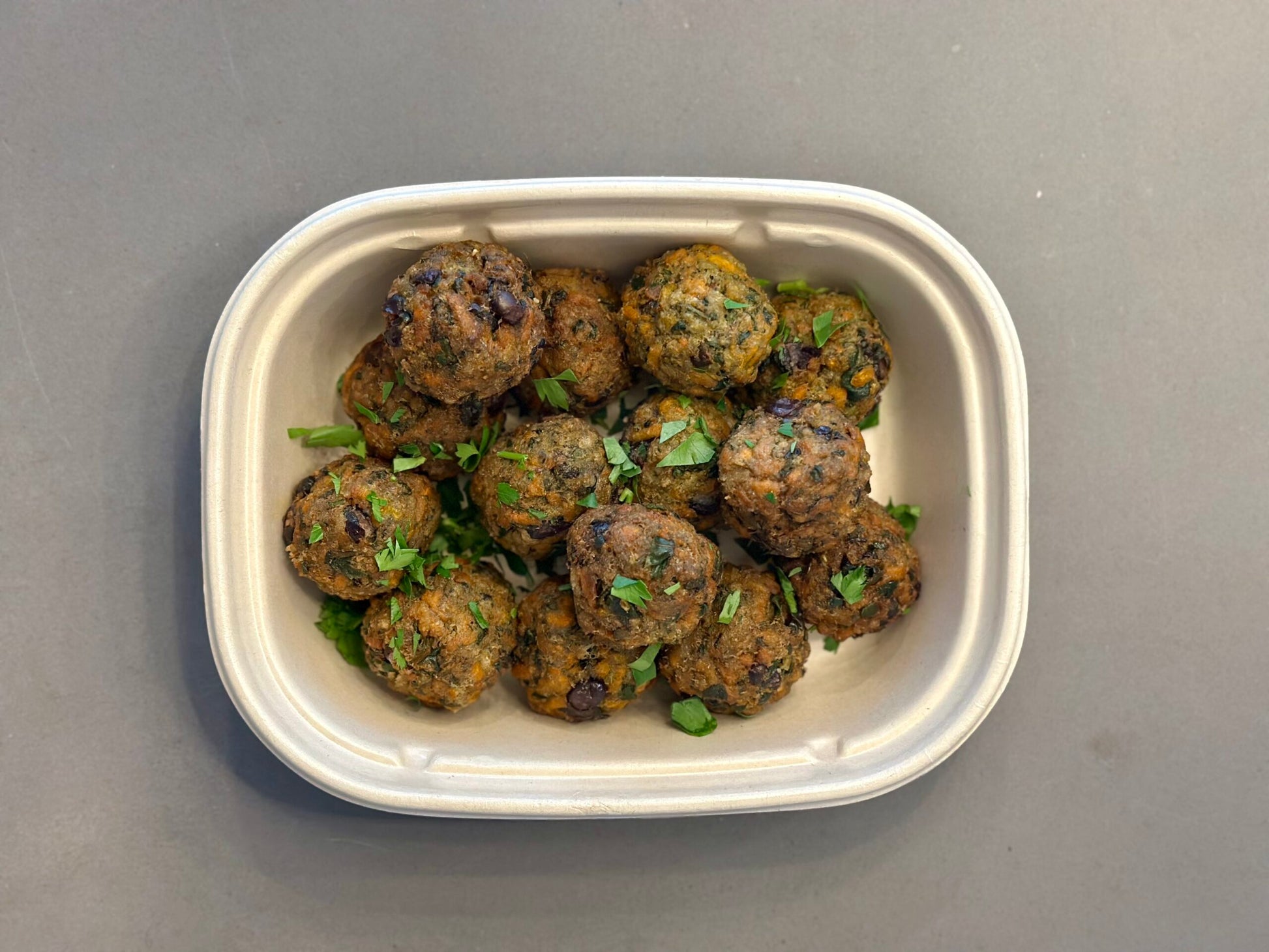 Broccoli, carrots, zucchini, spinach, parsley, garlic, onion, black beans, gluten free bread crumbs, rice flour, salt, pepper
