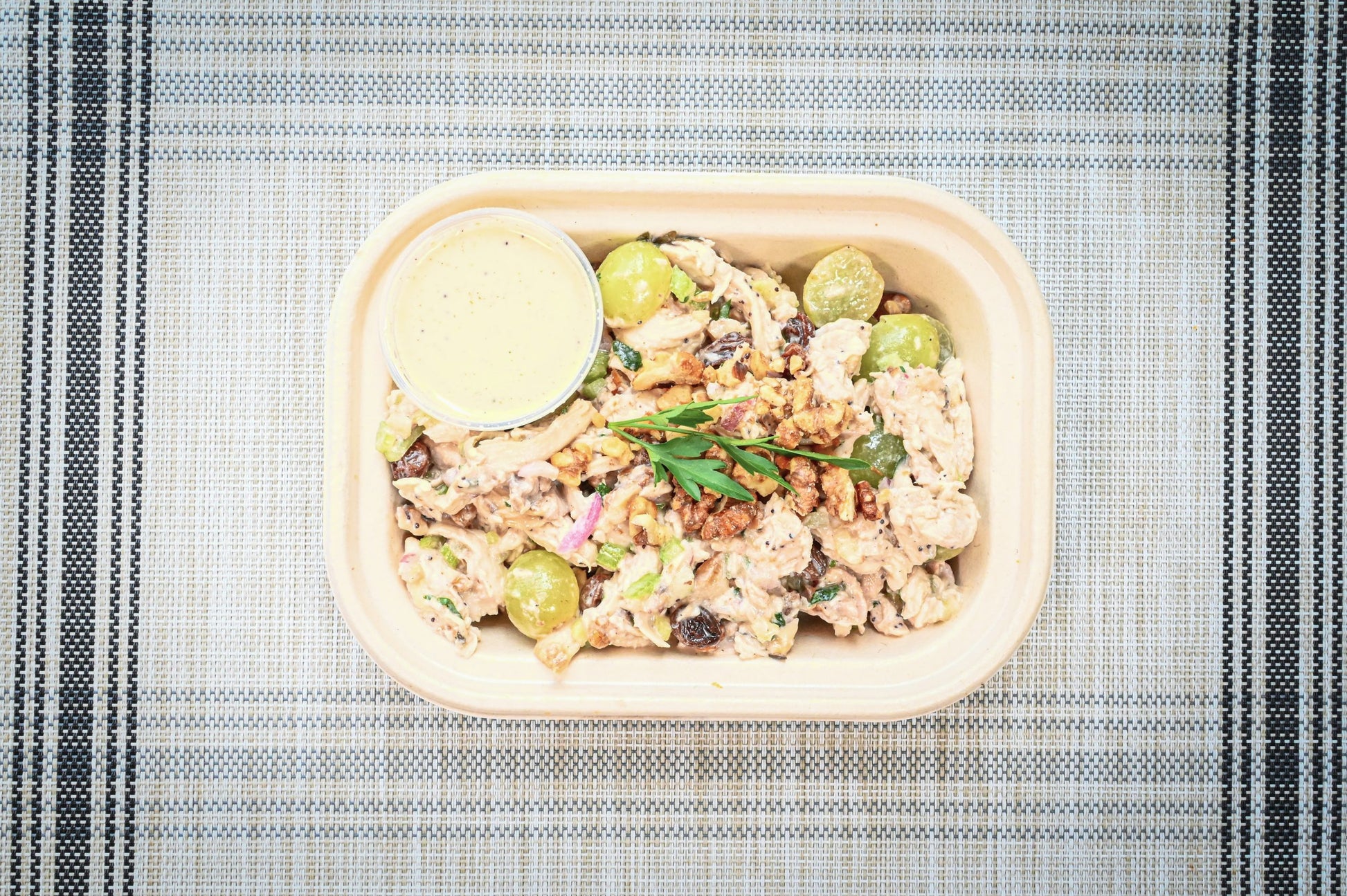 Roasted local, free range chicken salad tossed in creamy apple cider vinaigrette with maple walnuts, raisins, celery, and red onions. A Clean Plate Kitchen favorite, perfect for making a sandwich, wrap, salad, or ready to eat & enjoy (no heating necessary).