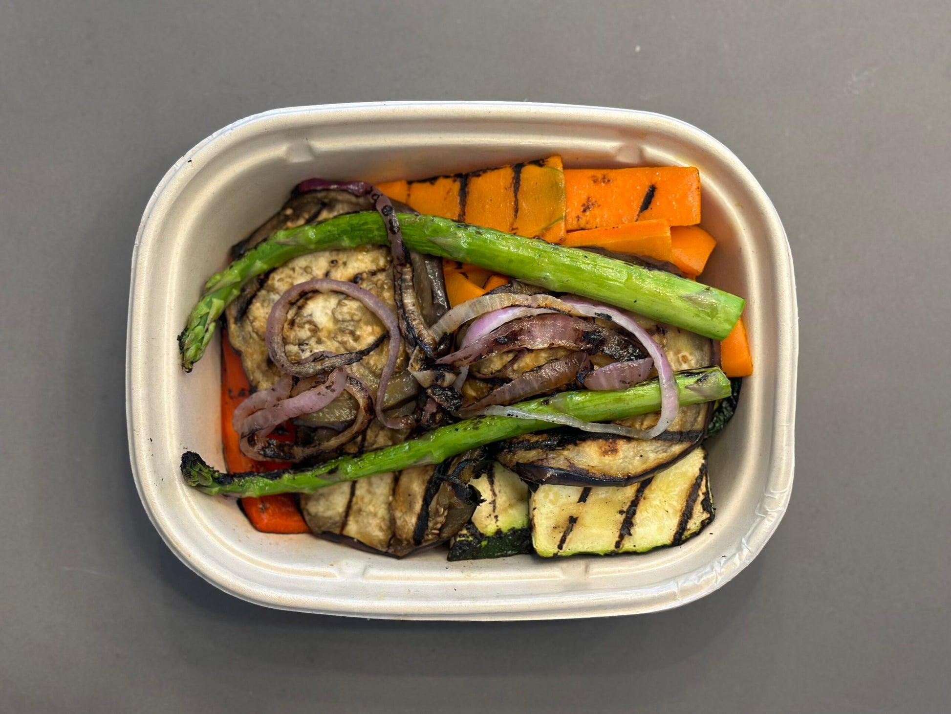 Looking for sides and additions to your family meals. Assorted grilled vegetables including carrots, red peppers, zucchini, eggplant, red onion, and asparagus.